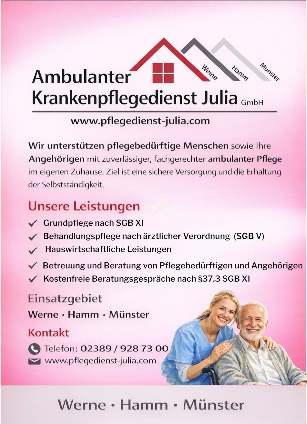 Der Pflegedienst Julia - Ihr ambulanter Pflegedienst nach Maß. Im Mittelpunkt unseres umfassenden Dienstleistungsangebotes steht immer der Mensch!
